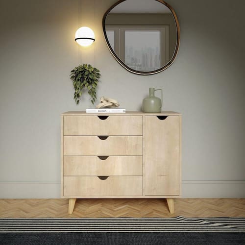 Seu visual dinâmico possui gavetas e uma porta, adaptando-se para armazenar diversos itens da rotina. Com tamanho compacto e design marcante, nossa Cômoda Ipanema se destaca nos projetos.