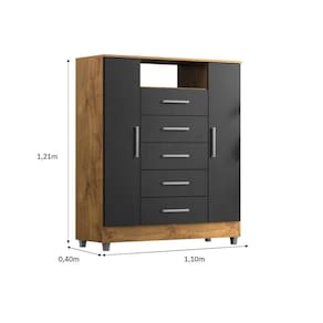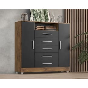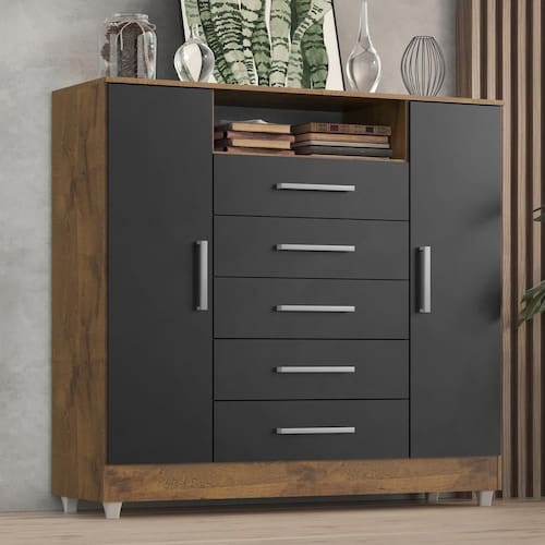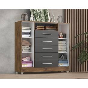 CÔMODA ISABELE| Com 5 gavetas, nicho para perfumes, eletrônicos e 2 portas com 4 prateleiras, dispõe de um design sofisticado é própria para pessoas exigentes com organização. As gavetas possuem CORREDIÇAS METÁLICAS, fazendo assim com que a gaveta não caia na hora que você for utilizar, evitando acidentes com crianças. O móvel suporta pesos de até 7kg em suas gavetas e 20kg no tampo suficiente para acomodar televisores, além disso acompanha pezinhos para melhor limpeza e durabilidade do produto. É importante verificar as dimensões da cômoda Isabele antes da compra para garantir que ela se ajuste adequadamente ao espaço disponível em seu quarto ou ambiente desejado. Certifique-se de seguir as instruções de montagem para uma montagem correta e segura.