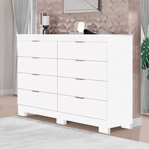 Trazendo estilo e muito espaço para organizar e dar requinte e sofisticação ao seu Quarto! Produzida em MDF premium, com acabamento em pintura U.V. Touch com 7 camadas de proteção, dispõe de oito gavetas com corrediças telescópicas, com abertura total e trava de segurança, puxadores embutidos com acabamento na cor cobre e kit de pés em ABS que trazem praticidade e segurança ao ambiente.