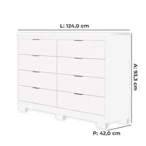 Especificações Técnicas: Marca: Tuboarte Modelo: Isadora Material: Estrutura Principal em MDF Pintura: U.V. Touch com 7 Camadas de duração Quantidade de Gavetas: 08 Sistema de abertura das Gavetas: Corrediças Telescópicas Puxadores: ABS com acabamento Bronze Com Pés: Sim