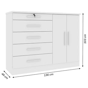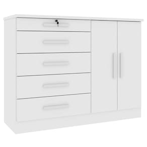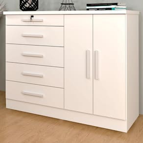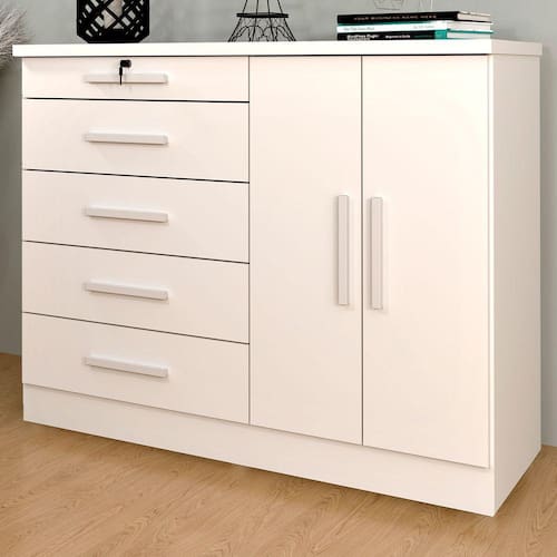 O(a) Comoda Istambul 2 Portas 5 Gavetas Neve - Tcil Móveis é produzido em MDF e MDP na escala de brilho Fosco e Semi-Brilho, e possui um grau de dificuldade de montagem: Médio.