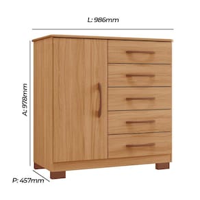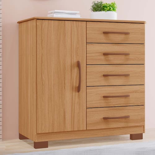 Comoda Itaipú New 1 Porta e 5 Gavetas 100% em MDF Tuboarte - Marrom