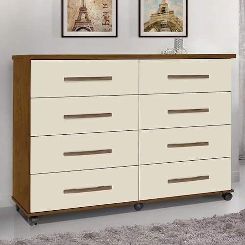 Comoda Jade 8 Gavetas e rodízios - Off White