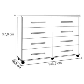 Dimensões da Cômoda Jade:– Altura: 97,8 cm– Largura: 136,5 cm– Profundidade: 44,5 cm