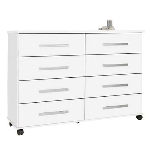 Cômoda Jade com 8 Gavetas Corrediça Telescópica e Rodinhas A Cômoda Jade com 8 Gavetas Corrediça Telescópica e Rodinhas é perfeita para organizar o seu dormitório. Com 08 gavetas, consegue acomodar muito bem as roupas que estão sobrando no seu guarda roupa, além disso ela possui rodízios que facilita muito a manuseio do mesmo. Existe uma infinidade de modelos de Cômoda disponíveis de acordo com a sua necessidade. Mas, antes de tudo é ideal medir o espaço livre para o móvel e conhecer os materiais em que são produzidos. Isso ajudará a efetuar uma compra perfeita. Além disso saber quem usará o móvel, desse jeito, você tem noção do espaço necessário. Normalmente, as mulheres tendem a usar mais espaço para guardar suas roupas, acessórios e sapatos. Então, nesse caso é ideal que a cômoda possua dimensões grandes. Como por exemplo a Cômoda Jade com 8 Gavetas Corrediça Telescópica e Rodinhas.\nMedidas\nAltura 97,8 cm\nLargura 136,5 cm\nProfundidade 44,5 cm\nCaracterísticas\nModelo Cômoda Jade\nTipo do produto Cômoda\nAmbiente Quarto\nCorrediças Telescópicas\nMaterial MDP/MDF\nGavetas 08\nMarca Móveis Primus\nPintura Ultravioleta com acabamento fosco\nPossui Pés Sim, possui rodízios\nGarantia 3 meses\nInformações Importantes\nObjetos decorativos que porventura apareçam na foto, não acompanham o produto. Não nos responsabilizamos pela montagem/instalação dos produtos.\nMontagens, desmontagens e instalações são responsabilidades do cliente. Indicamos que contrate uma empresa de montagem ou um montador de sua confiança.\nAlém disso, favor verificar se os pés e acessórios estão dentro do forro inferior do produto. Em suma, todas as informações divulgadas sobre o produto são de responsabilidade do Fabricante.\nAs cores do produto podem variar de acordo com o seu monitor, a iluminação do ambiente em que você está e até mesmo a sua percepção visual. Além da cor, pequenos detalhes e acabamentos podem não ficar evidentes na foto, por isso as imagens são meramente ilustrativas.