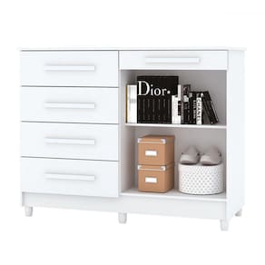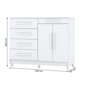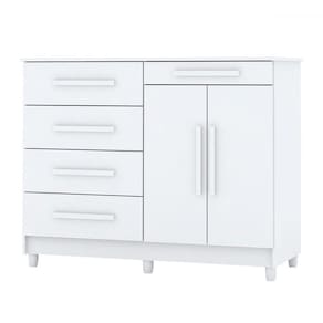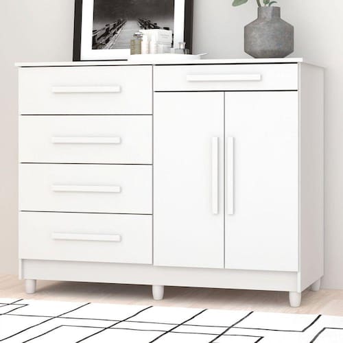 O(a) Cômoda Jasper 2 Portas 5 Gavetas Branco - Loja é produzido em MDP na escala de brilho Impressão UV, e possui um grau de dificuldade de montagem: Médio.