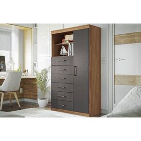 Cômoda de Quarto Marabá 1.6 c/ 1 Porta e 6 Gavetas Jatobá/Grafite - Santos Andirá