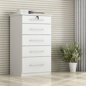 Cômoda Lara 5 Gavetas. Para completar o visual do seu quarto e manter a organização, a Cômoda é perfeita. Possui sete gavetas, que armazenam suas roupas e pertences muito bem distribuídos. Produzida em estrutura feita de materiais resistente em MDP, e um excelente acabamento em U.V.