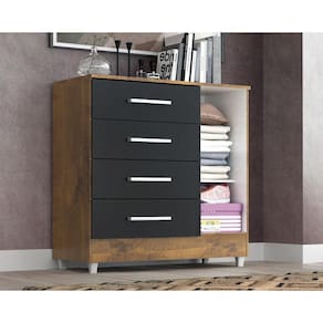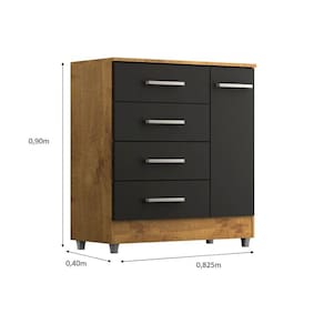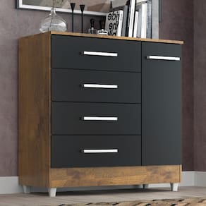 A cômoda Laura com 4 gavetas e 1 porta é um móvel versátil e prático projetado para oferecer espaço de armazenamento para roupas, acessórios e outros itens pessoais. Com suas gavetas e portas, oferece diferentes opções de organização. Além das gavetas, a cômoda Laura possui duas portas que podem ser abertas para revelar um espaço interno com 1 prateleira para guardar itens adicionais e contém uma superfície superior plana, que pode ser usada para colocar objetos decorativos, como vasos, porta-retratos ou Televisão. É importante verificar as dimensões da cômoda Laura antes da compra para garantir que ela se ajuste adequadamente ao espaço disponível em seu quarto ou ambiente desejado. Certifique-se de seguir as instruções de montagem para uma montagem correta e segura.