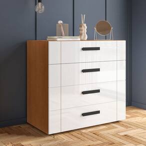 O(a) Cômoda Lisboa 4 Gavetas Freijó/Branco - Politorno é produzido em MDF e MDP na escala de brilho Semi-Fosco, e possui um grau de dificuldade de montagem: Médio.