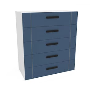 O(a) Cômoda Lisboa 5 Gavetas Branco/Azul - Politorno é produzido em MDF e MDP na escala de brilho Semi-Fosco, e possui um grau de dificuldade de montagem: Médio.