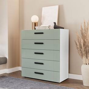 Cômoda Lisboa 5 Gavetas Verde e Branca