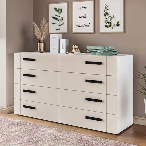 O(a) Cômoda Lisboa 8 Gavetas Branco/Creme - Politorno é produzido em MDF e MDP na escala de brilho Semi-Fosco, e possui um grau de dificuldade de montagem: Médio.