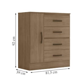 Cômoda Lite 1 Porta e 4 Gavetas - Móveis Leão Apresentamos a Cômoda Lite 1 Porta e 4 Gavetas, uma combinação de elegância e praticidade. Com estrutura em MDP e pintura UV, esta cômoda oferece durabilidade e um acabamento refinado. Possui uma porta com dobradiças metálicas, quatro gavetas com corrediças telescópicas e prateleiras internas para máxima organização. Os puxadores e pés em PVC garantem estabilidade e funcionalidade. Cada gaveta suporta até 7kg, proporcionando amplo espaço interno para suas necessidades. Ideal para quem busca sofisticação e eficiência em um único móvel.