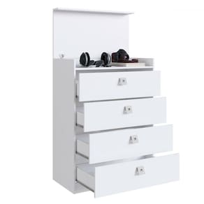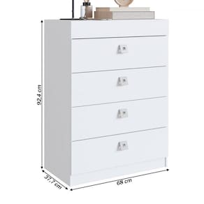 O(a) Cômoda Lock 4 Gavetas Branco - Art In Móveis é produzido em MDP na escala de brilho Semi-Brilho, e possui um grau de dificuldade de montagem: Médio.