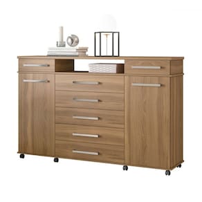 O(a) Cômoda London 7 Gavetas Amêndola Touch - Demóbile é produzido em MDP na escala de brilho Brilho e Fosca com Textura, e possui um grau de dificuldade de montagem: Médio.