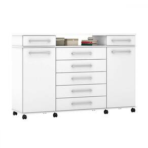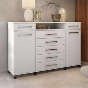O(a) Cômoda London 7 Gavetas Branco - Demóbile é produzido em MDP na escala de brilho Brilho e Fosca com Textura, e possui um grau de dificuldade de montagem: Médio.