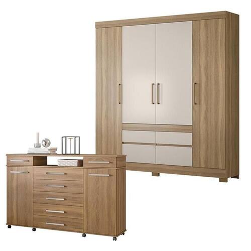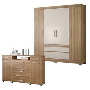 Cômoda London e Guarda Roupa Casal Bilbao Amêndola Off White - Demóbile