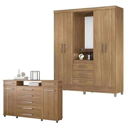 Cômoda London e Guarda Roupa Casal Capelinha Pérsia Amêndola Touch - Demóbile