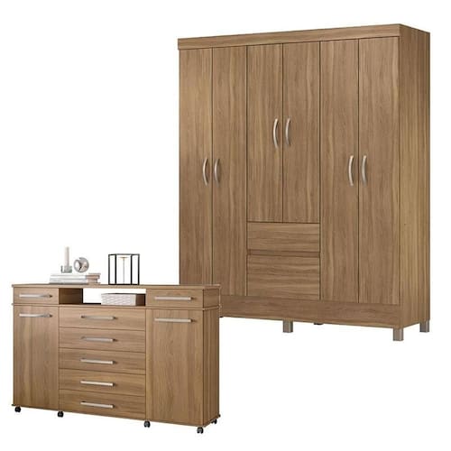 Cômoda London e Guarda Roupa Casal Flash 2 Amêndola Touch - Demóbile