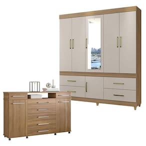 Cômoda London e Guarda Roupa Casal Guarujá Amêndola Off White - Demóbile