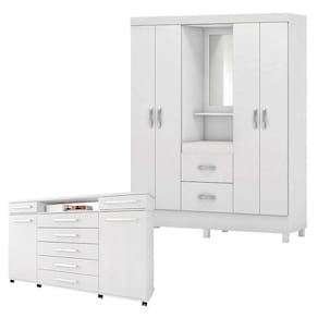 Cômoda London e Guarda Roupa Casal Lord Branco - Demóbile