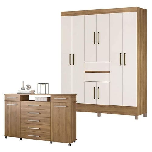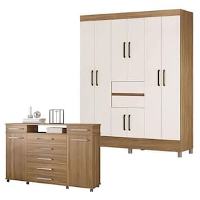 Cômoda London E Guarda Roupa Casal Munique Amêndola Off White - Demóbile