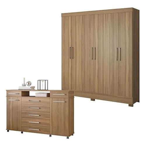 Cômoda London e Guarda Roupa Casal Prático Amêndola Touch - Demóbile