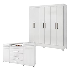 Cômoda London e Guarda Roupa Casal Prático Branco - Demóbile