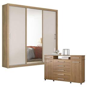 Cômoda London e Guarda Roupa Casal Residence Amêndola Off White - Demóbile