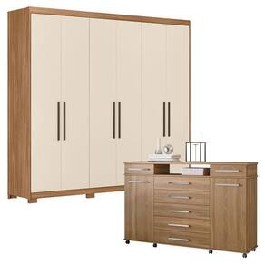 Cômoda London e Guarda Roupa Casal Venice 62580PE Amendola Touch Off White com Pés - Demóbile
