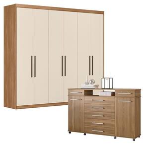 Cômoda London e Guarda Roupa Casal Venice 62780 Amendola Touch Off White - Demóbile