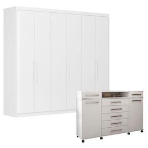 Cômoda London e Guarda Roupa Casal Venice 62780 Branco Brilho - Demóbile