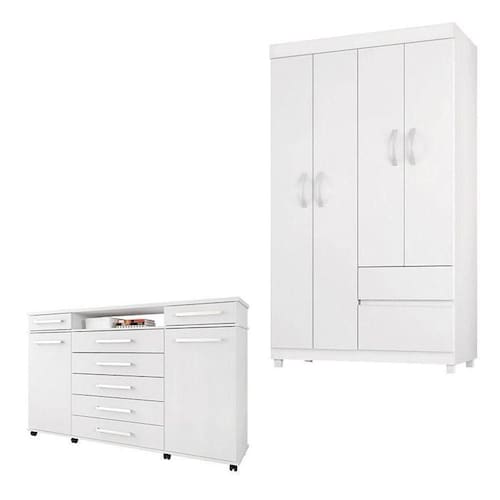 Cômoda London e Guarda Roupa Solteiro Lótus Branco - Demóbile