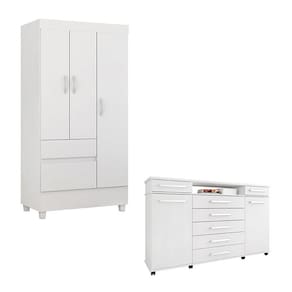 Cômoda London e Guarda Roupa Solteiro Wind Branco Flex - Demóbile