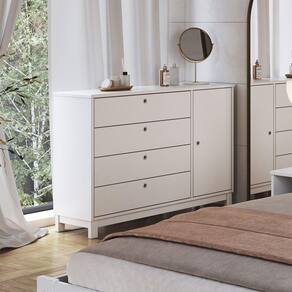 Cômoda Lucy De Madeira Maciça Branco Apresentamos a Comoda Lucy da BB, a solucao ideal para quem busca estilo e organizacao. Produzida em madeira macica, com acabamento em pintura UV, essa comoda nao apenas embeleza seu ambiente, mas tambem garante resistencia e durabilidade, mantendo sua aparencia impecavel por muito mais tempo. Seu design sofisticado e classico oferece amplo espaco de armazenamento, perfeito para guardar roupas, acessorios e itens pessoais, tudo com facil acesso. A Comoda Lucy se adapta perfeitamente a qualquer decoracao, adicionando um toque de charme e funcionalidade ao seu quarto. Transforme seu espaco com a Comoda Lucy e descubra a combinacao perfeita de beleza e praticidade. Nao perca a chance de otimizar sua organizacao com estilo! Deve ser feita com pano macio e seco ou levemente umedecido com agua e sabao neutro. Nao devem ser utilizados abrasivos como palha de aco e objetos cortantes. Caracteristicas Gerais: Material: Madeira Macica Acabamento: Pintura Uv Semi Brilho Pes: 4 Tipos de Pes: Madeira Macica Peso Recomendado: 8 Kg (por Pessoa/gaveta/prateleira) Bordas: Pintura Uv Kit Ferragem Completo: Sim Manual de Montagem Detalhado: Sim Produto Nacional: Sim