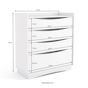 A Cômoda M260 é ideal para quem procura espaço em um cômodo menor, para quem gosta de ter as peças de vestuário, sapatos e até acessórios sempre à mão, além de organizados de forma prática. O espaço das gavetas junto com o tampo forma um combo super funcional, que acomoda tudo o que você precisa deixar guardado. Além de também dar uma mãozinha para o visual do ambiente, já que pode receber itens decorativos diversos. De quebra, a tonalidade clássica e puxadores discretos traz um ar elegante ótimo para combinar com o restante da mobília e criar um dormitório harmônico do jeitinho que você merece.PRINCIPAIS CARACTERÍSTICAS:Matéria-Prima: 100% MDP;Corrediças: Telescópicas;Sistema de Montagem: Parafusos Philips e Minifix;Gavetas: 4;Gavetão: Possui;Peso suportado por gaveta: 6 kg;Dimensões do produto montado (L x A x P): 91 x 101 x 45 cm;Peso: 40,25 kg;Garantia: 3 Meses.