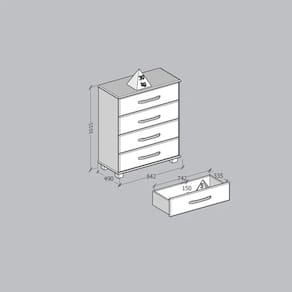 CONTEÚDO DA EMBALAGEM:<Br> 1 Cômoda 4 Gavetas<Br> 1 Kit Ferragens<Br> 1 Manual de Montagem<Br><Br>