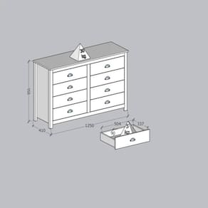 ESPECIFICAÇÕES TÉCNICAS:<Br> Matéria prima madeira maciça de pinus de reflorestamento;<Br> Pintura Acetinada Verniz PU e UV;<Br> Corrediças telescópicas;<Br> Puxadores metálicos em ouro envelhecido;<Br> Pés alongados em madeira;<Br> Peso máximo suportado pelas Gavetas 05kg distribuídos);<Br> Amplo espaço para armazenamento;<Br> Isolamento de peças com manta de polietileno expandido (Isomanta);<Br> Possui manual de montagem;<Br> Sistema de montagem simples e rápida.<Br><Br>