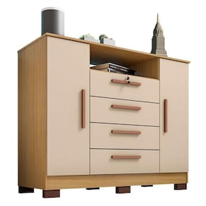 Cômoda Madri 4 Gavetas 2 Portas Carvalho Americano Off White - Incorplac