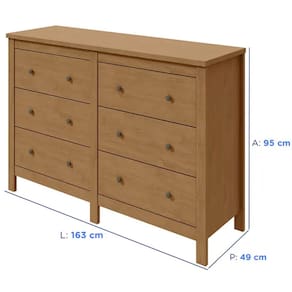 Com 6 gavetas espaçosas, essa cômoda é ideal para guardar roupas, acessórios e objetos pessoais de forma prática e organizada. Todas as gavetas contam com corrediças telescópicas, que proporcionam um deslizamento suave e seguro, permitindo abertura total e facilitando o acesso ao conteúdo interno. O fundo das gavetas e costas em HDF assegura ainda mais firmeza à estrutura e prolonga a vida útil do móvel.