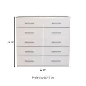 O(a) Cômoda Marbela 10 Gavetas Branco - Evidencia Móveis é produzido em MDP na escala de brilho Fosco, e possui um grau de dificuldade de montagem: Médio.