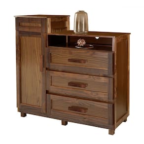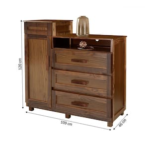O(a) Cômoda Mato Grosso 1 Portas 3 Gavetas com Espelho Imbuia Natural - Rodmóveis é produzido em Pinus e HDF na escala de brilho Fosco, e possui um grau de dificuldade de montagem: Médio.