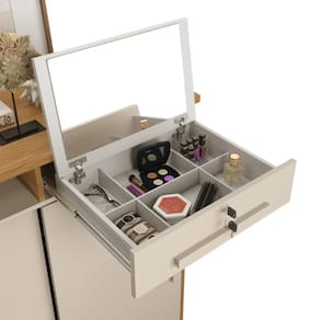 A cômoda Max 2020 mistura o Freijo e o Off White, criando uma peça que proporciona beleza e funcionalidade com suas portas e gavetas espaçosas.