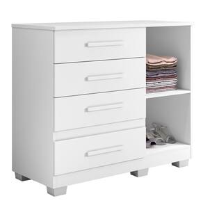 Características: Material principal: MDP Espessura das chapas: 15 mm Escala de brilho: semi fosco Acabamento: Pintura UV Sistema de montagem: parafuso, cavilha e cantoneiras metálicas Quantidade de Gavetas: 4 Quantidade de Portas: 1