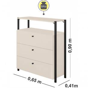 Cômoda Metalic Off White/preto 3 Gavetas Móveis Estrela