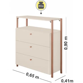 SKU: 15120 RefID: 293409802 Gênero - Unissex Cor - Off White Descrição - DIMENSÕESAltura: 90 cmLargura: 65 cmProfundidade: 41 cmPeso Bruto: 27 KgDETALHES DO PRODUTO- 100% em MDF- Estrutura em Aço Carbono com pintura epóxi- Puxadores em poliestireno- Corrediças Telescópicas- Sistema de antitombamento incluso- Pintura atóxica- Resistência e durabilidade- Material comoda: Aço Carbono/MDF- Gavetas: 0- Nível de dificuldade da montagem: Difícil - Embalagem contém: 1 comoda + 4 pés Imagens meramente ilustrativas desenvolvidas em recursos 3D com possibilidade de variação sobre o produto real.Os produtos podem sofrer alterações sem aviso prévio.A decoração dos produtos é meramente ilustrativas, os itens não são comercializados pela Pura Magia. Descritivo - Cômoda Metalic, 100% MDF, estrutura metálica em Aço Carbono e pintura Epoxi, 4 gavetas com corrediças telescópicas. Disponível em outras cores para combinar em vários ambientes. Possui Gavetas - Sim Garantia - 6 meses Possui Portas - Não Material - AÇO CARBONO/MDF Modelo - Cômoda Metalic Off White/Rosê 3 Gavetas Móveis Estrela Largura - 65 Profundidade - 41 Altura - 90 Complexidade da Montagem - Difícil Necessita Montagem - Sim Suporta Até - Tampo/Prateleira: 5Kg; Gavetas: 3Kg Ambiente - Quarto Infantil Itens Inclusos - 1 COMODA + 4 PÉS Acabamento - Pintura UV Acetinado de Alta Qualidade e Tubos em pintura epóxi Peso (kg) - 24,9 Manual de montagem - http://moveisestrela.hospedagemdesites.ws/manuais_de_montagem/29340_COMODA-METALIC---22A-C-03-VOL_9802_7893530124895.pdf