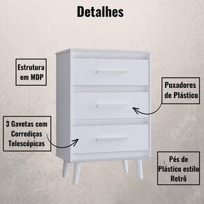 A Cômoda Mila 3 Gavetas combina elegância com funcionalidade. Seu design sofisticado e acabamento impecável oferecem durabilidade e estilo atemporal para qualquer ambiente. Com 3 gavetas espaçosas, é a escolha ideal para quem busca organização sem abrir mão do charme na decoração do lar.