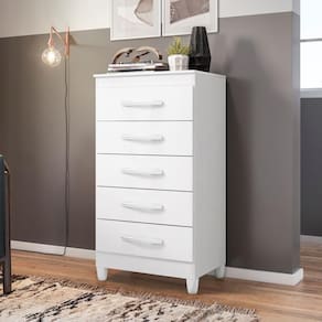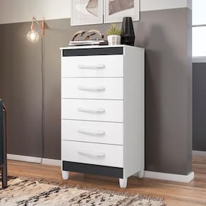 Dispõe de 5 gavetas com profundidade excelente para acomodar todas as suas roupas.