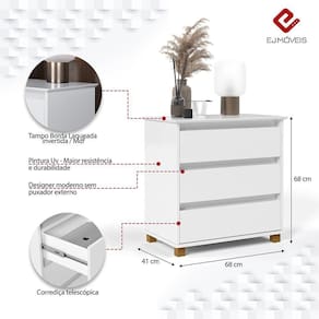 1 Cômoda Mini EJ Versátil 3 Gavetas